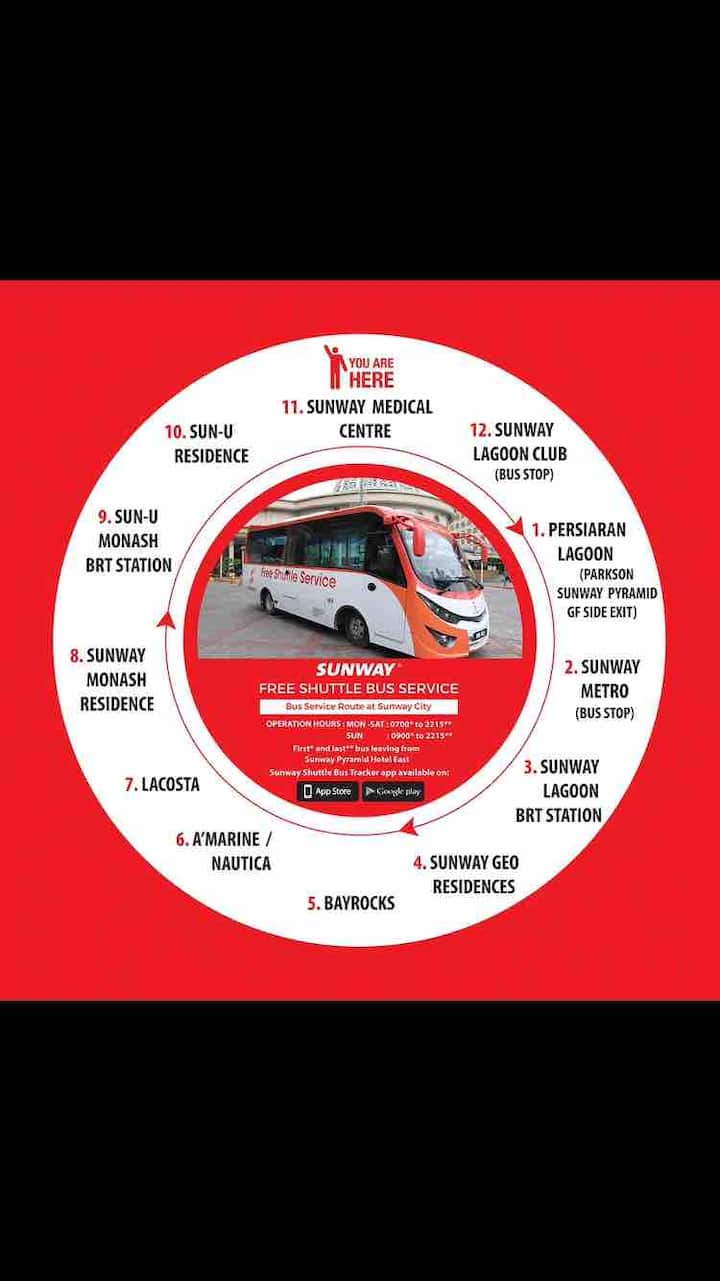 These are the lines and routes that have stops nearby - Bus. Morten Berg Transport AS. Sunway provides a free shuttle bus service around Sunway City every 25 minutes subject to traffic conditions.
